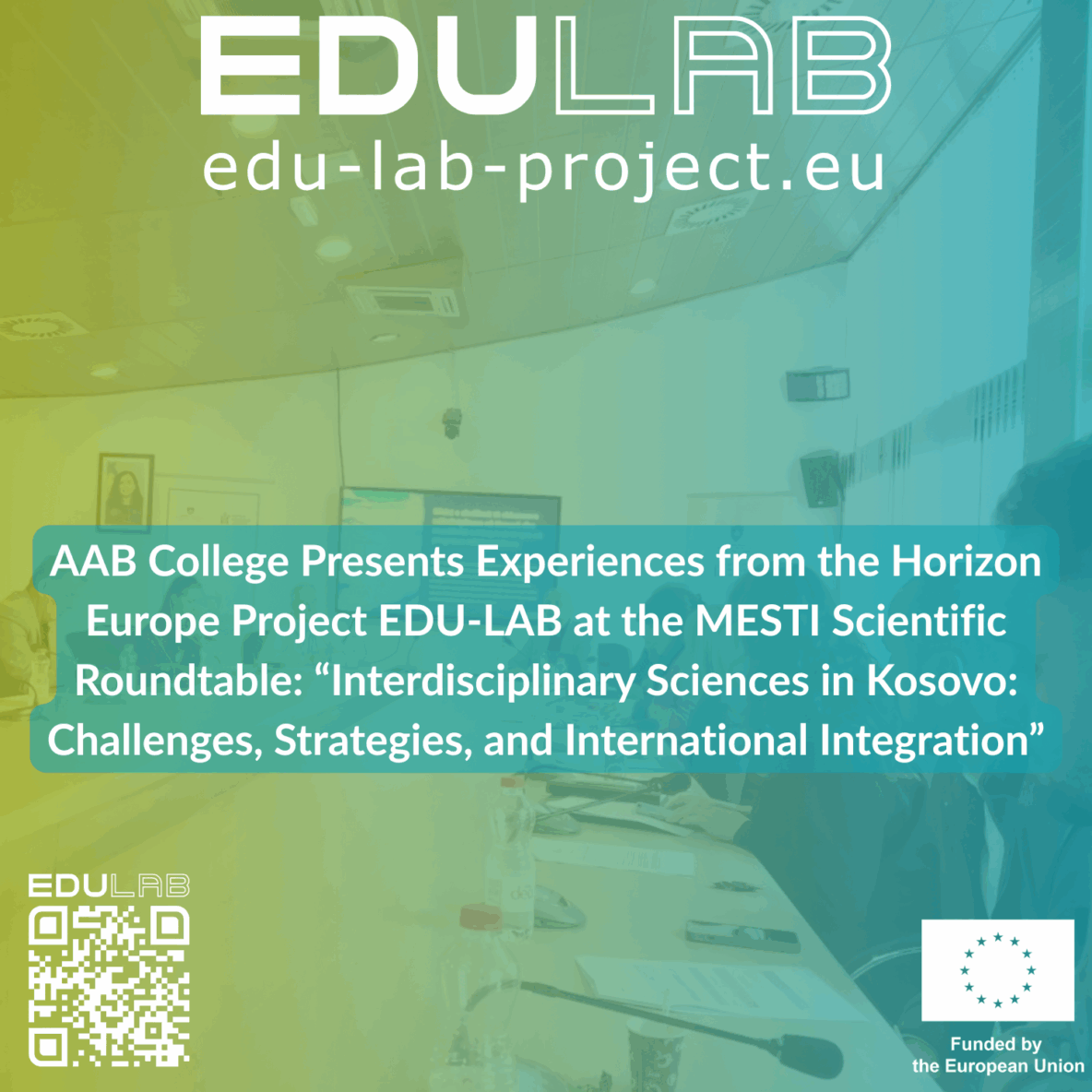 AAB College Presents Experiences from the Horizon Europe Project EDU-LAB at the MESTI Scientific Roundtable: βInterdisciplinary Sciences in Kosovo: Challenges, Strategies, and International Integrationβ